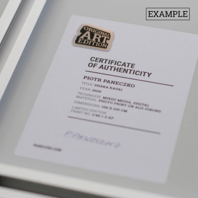 Jedes Unikat und Editionskunstwerk, das bei Color of Spot erworben wird, erhält ein Echtheitszertifikat mit einer Auflagennummer und der Signatur des Künstlers.