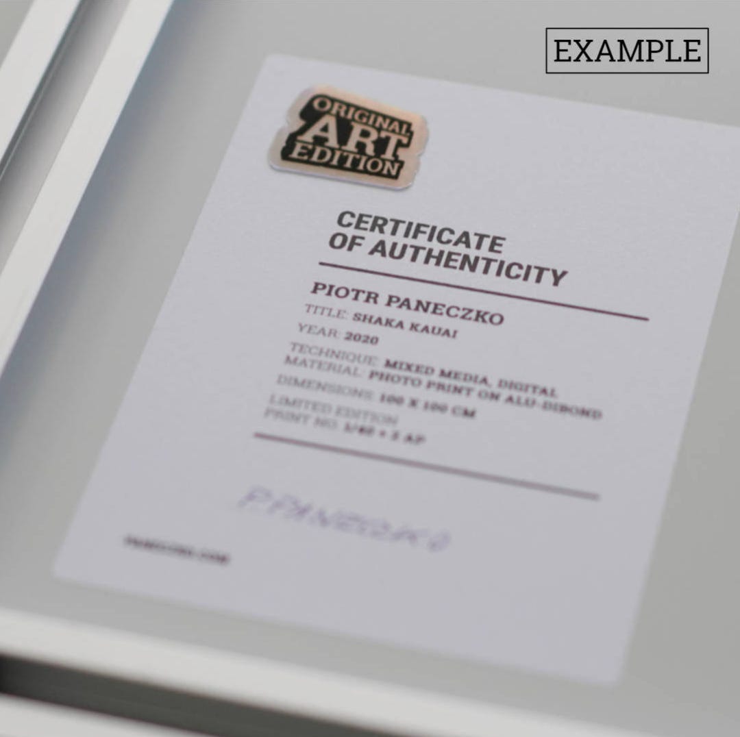 Every unique and editioned work of art purchased from Color of Spot receives a certificate of authenticity with an edition number and the artist's signature.