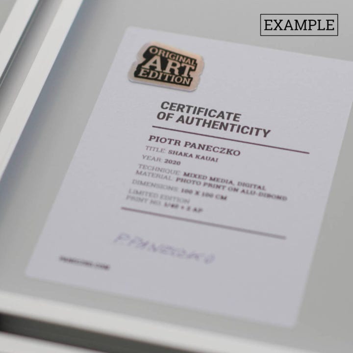 Each unique piece and edition artwork purchased at Color of Spot comes with a certificate of authenticity, including an edition number and the artist’s signature.